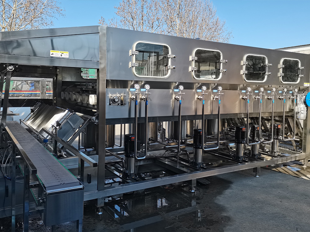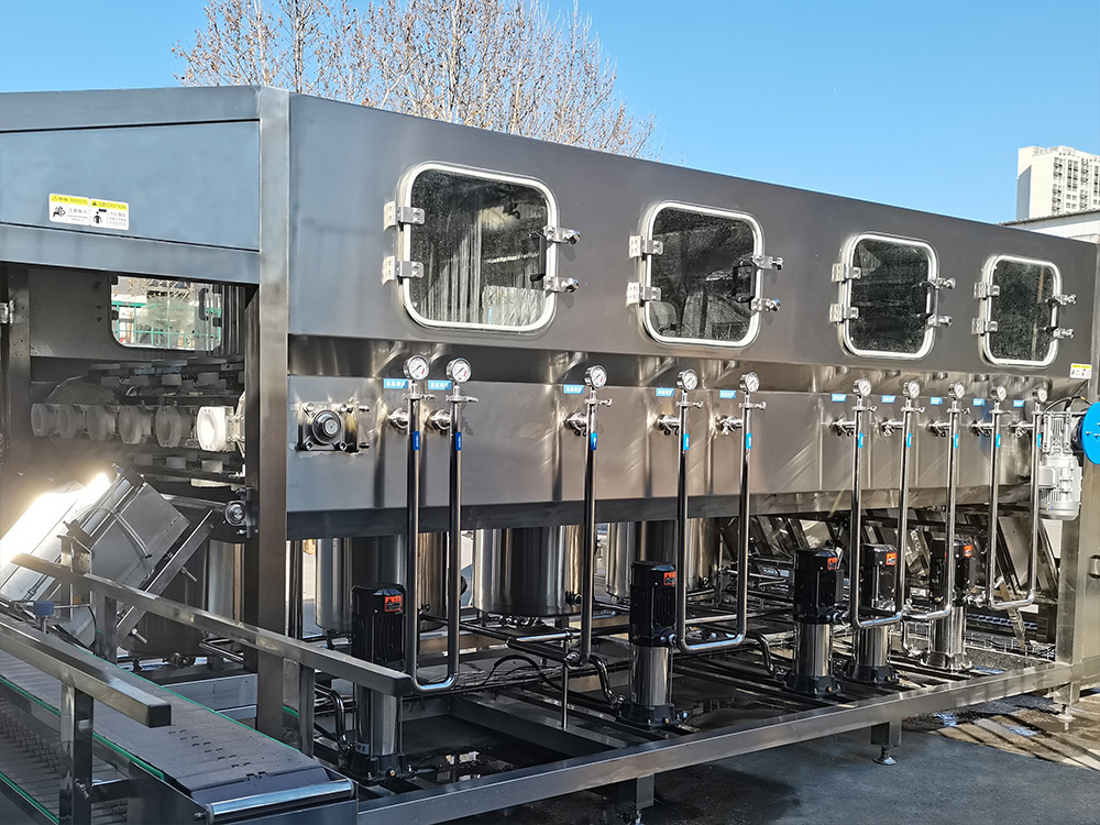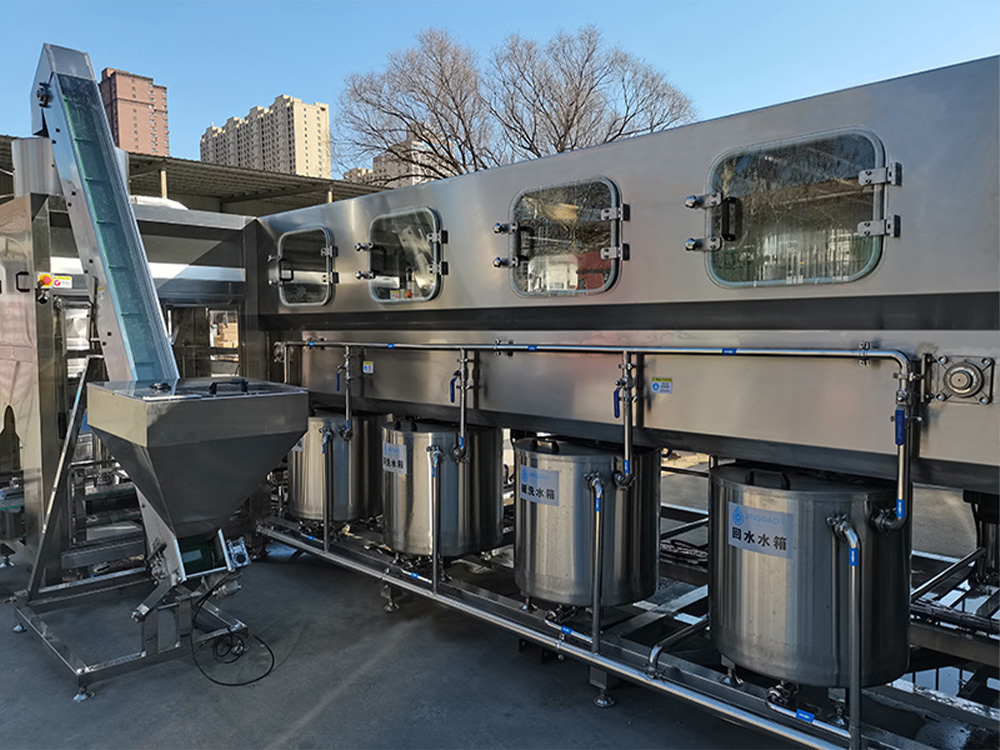 全自动桶装水生产线是灌装纯净水的专用设备,也可用于蒸馏水、矿泉水和其他无菌液体的灌装。该设备使用的原材料符合食品行业和其他行业要求。设备采用AC380V/50HZ交流电源,采用PLC可编程控制器控制系统,通过高清晰触摸屏编辑程序自动运行,动力传动采用减速电机与气动控制系统,性能可靠、操作简便、维护简单的。整个洗瓶、灌装、套盖和压盖全过程均在封闭隧道内进行,有效地防止纯净水在灌装过程中可能发生的二次污染,符合卫生标准。本机机体全部采用优质不锈钢材料,其它部分也均采用无毒、耐用的组合材料,电气、气动系统采用进口元件,因此设备故障率低,可靠性高。