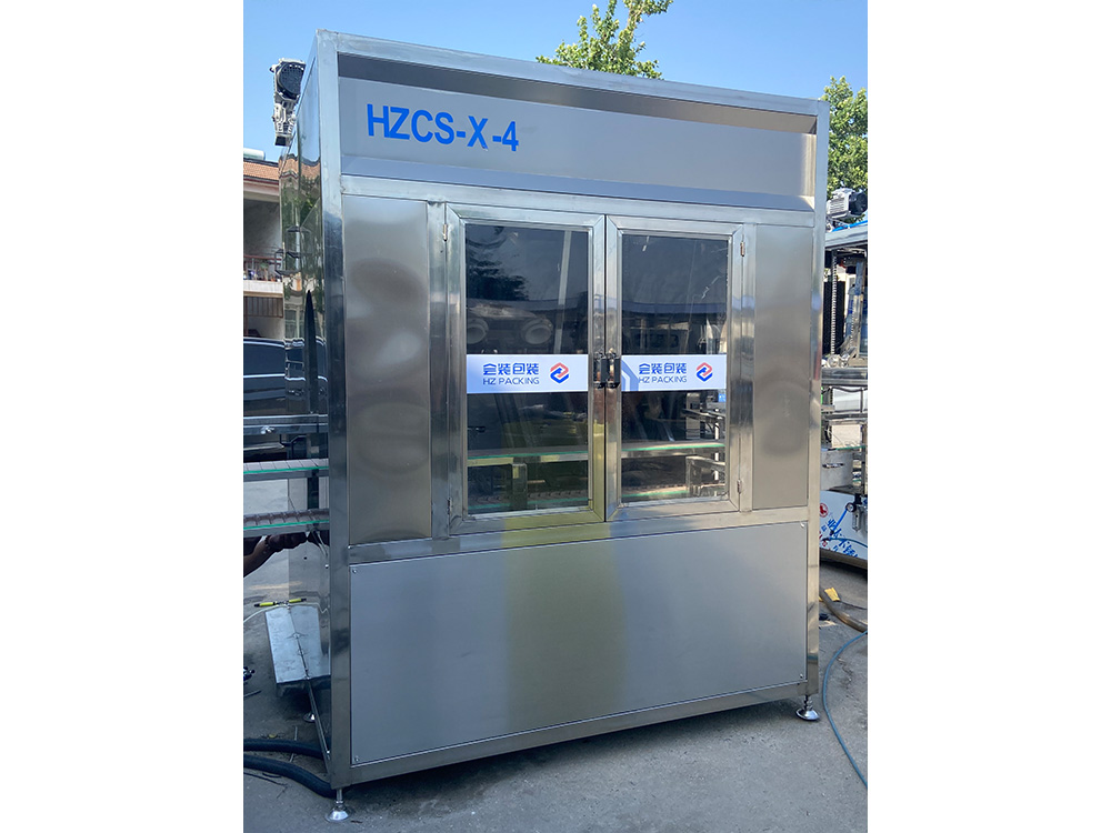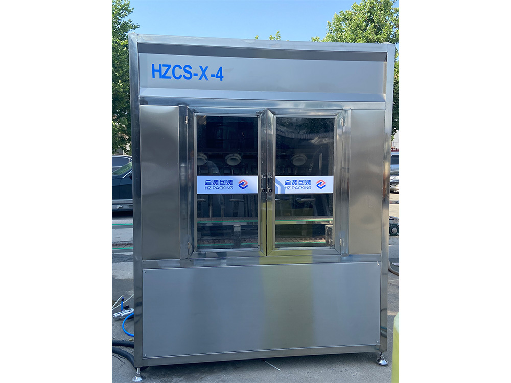 HZCS-X-4型全自动四工位高压内冲外刷机具有80-120公斤超高可调操作压力。适用于各种高难度清洗桶装水桶连线的清洁工作,超高的冲洗压力可迅速分解桶内的坚硬的污垢,可进行全方位无死角不留任何刷毛问题的洁净高效冲洗,可有效去除桶内青苔、杂质及块垢等污垢,桶外采用全方位毛刷进行刷洗,是矿泉水水厂理想清洗设备。