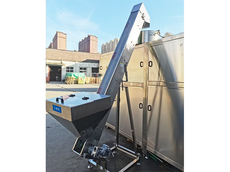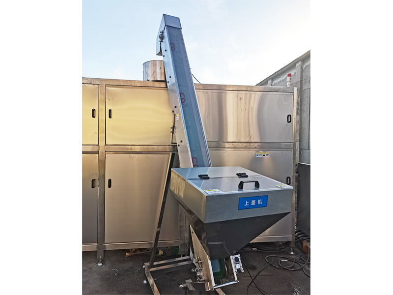 本机主要有输送带、电机、减速机和电器控制等结构组成,机器输盖能力受旋盖机料斗电子检测装置控制。