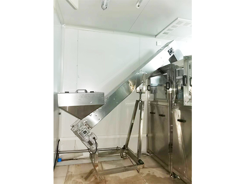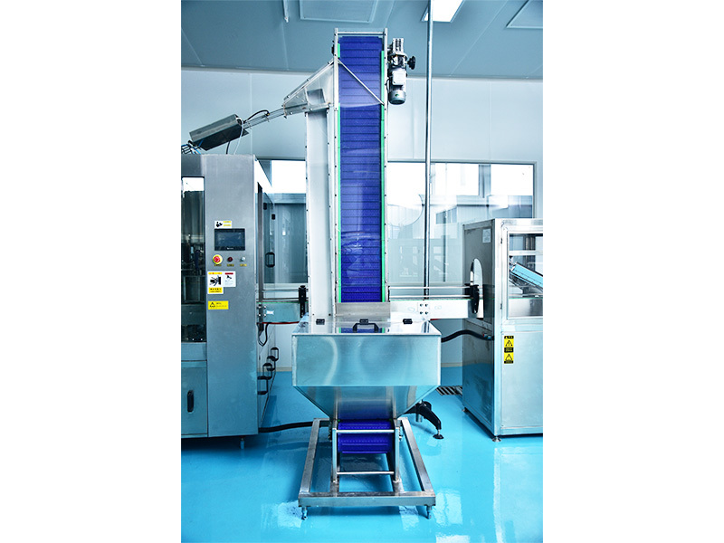 本机通过特制输送带能够连续向旋盖机料斗里提供瓶盖,输送过程是在密封的环境下进行的,其结构简单实用,操作维护容易,本机最大优点是不对灌装房的净化空气产生污染。