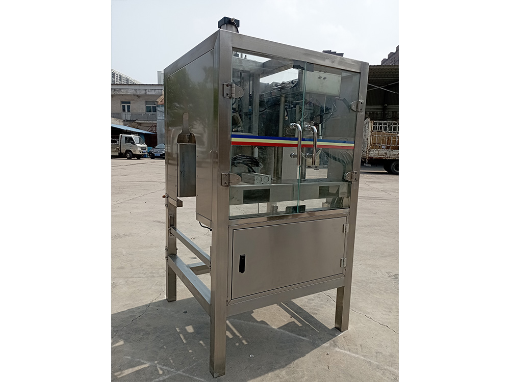 割膜拔盖机,主要是为了适应广大矿泉水厂、纯净水厂厂家的需要,将繁琐的空桶处理工艺变为简单自动化。该设备的智能性表现为有盖拔盖,无盖自动经过,如有异常未拔下盖,出桶自动导出;机械部分采用气缸支掌提瓶自动定位,拔盖时不影响进桶和出桶输送,适合非标准异型等径桶。依靠气缸给力提瓶夹紧,能快速、准确、省气、省力的拔掉桶盖。设备性能可靠、操作简单、维护方便。